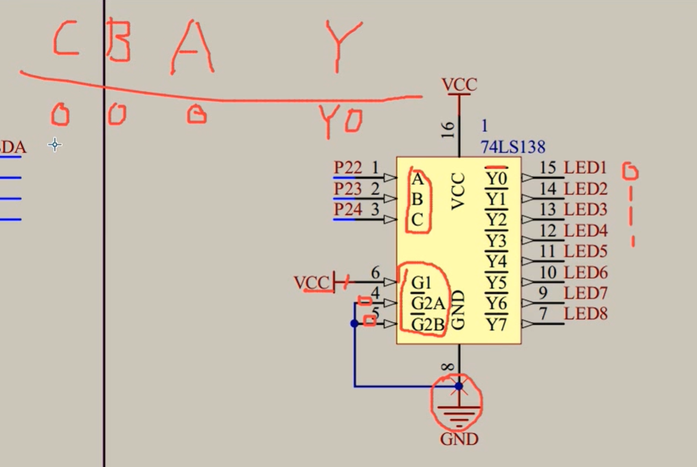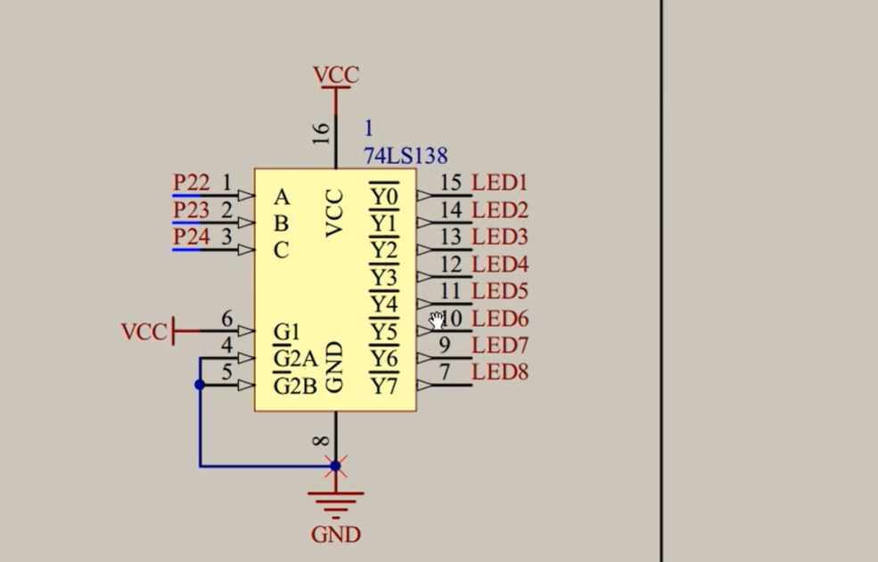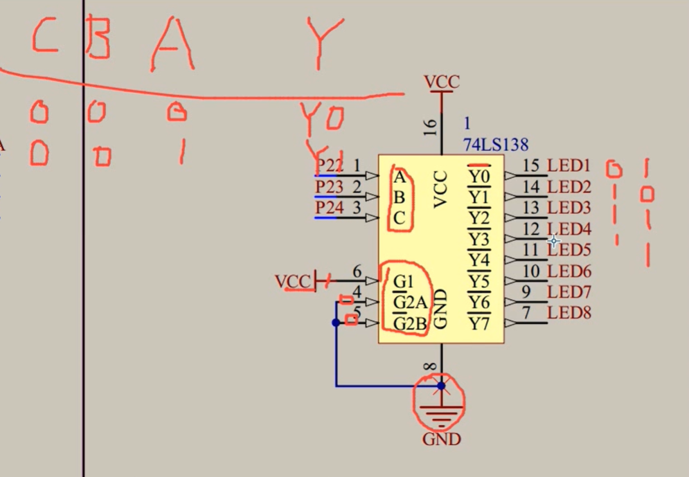 LED1-8接到了138译码器
