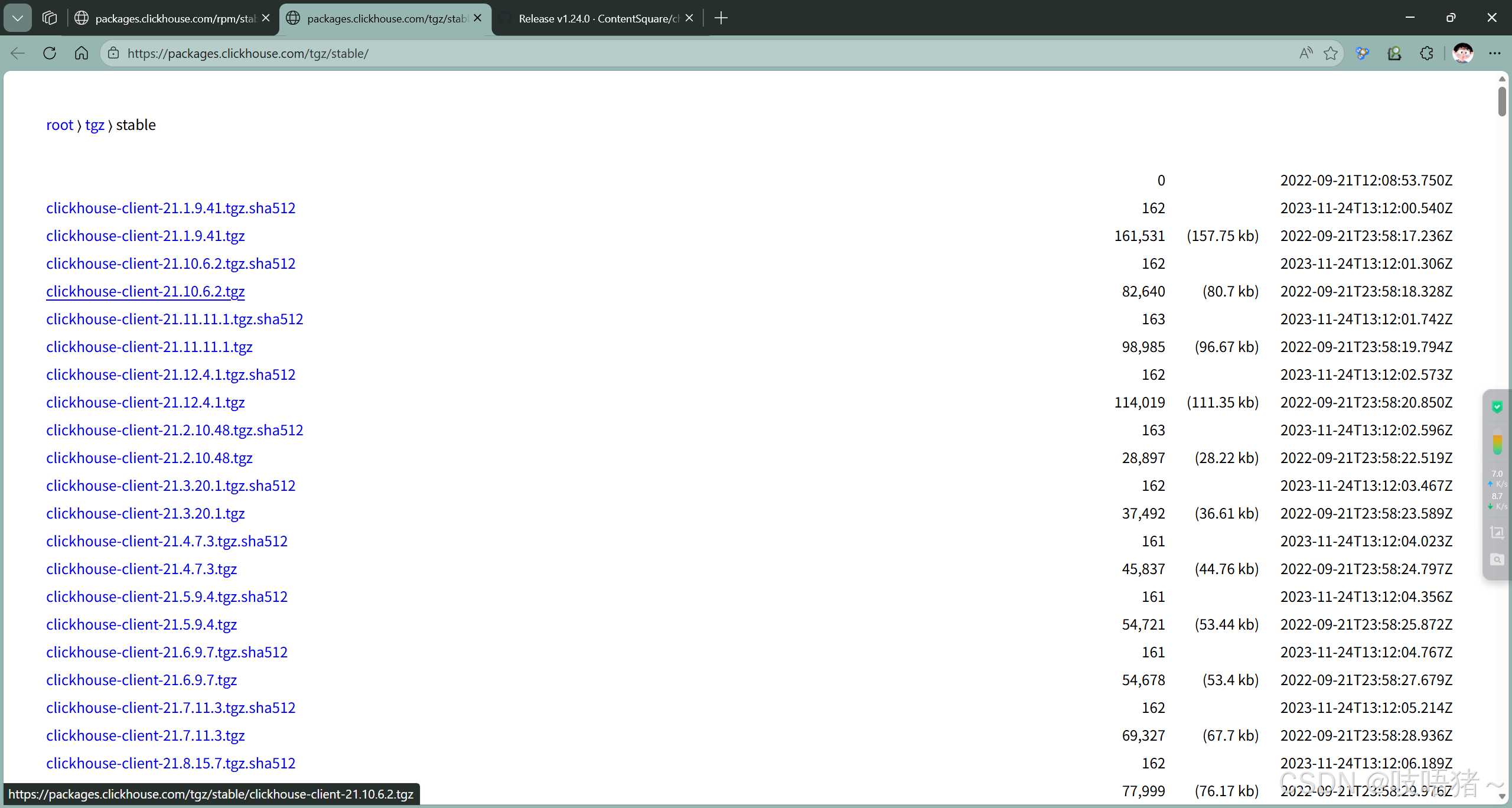 下载地址:https://packages.clickhouse.com/tgz/stable/