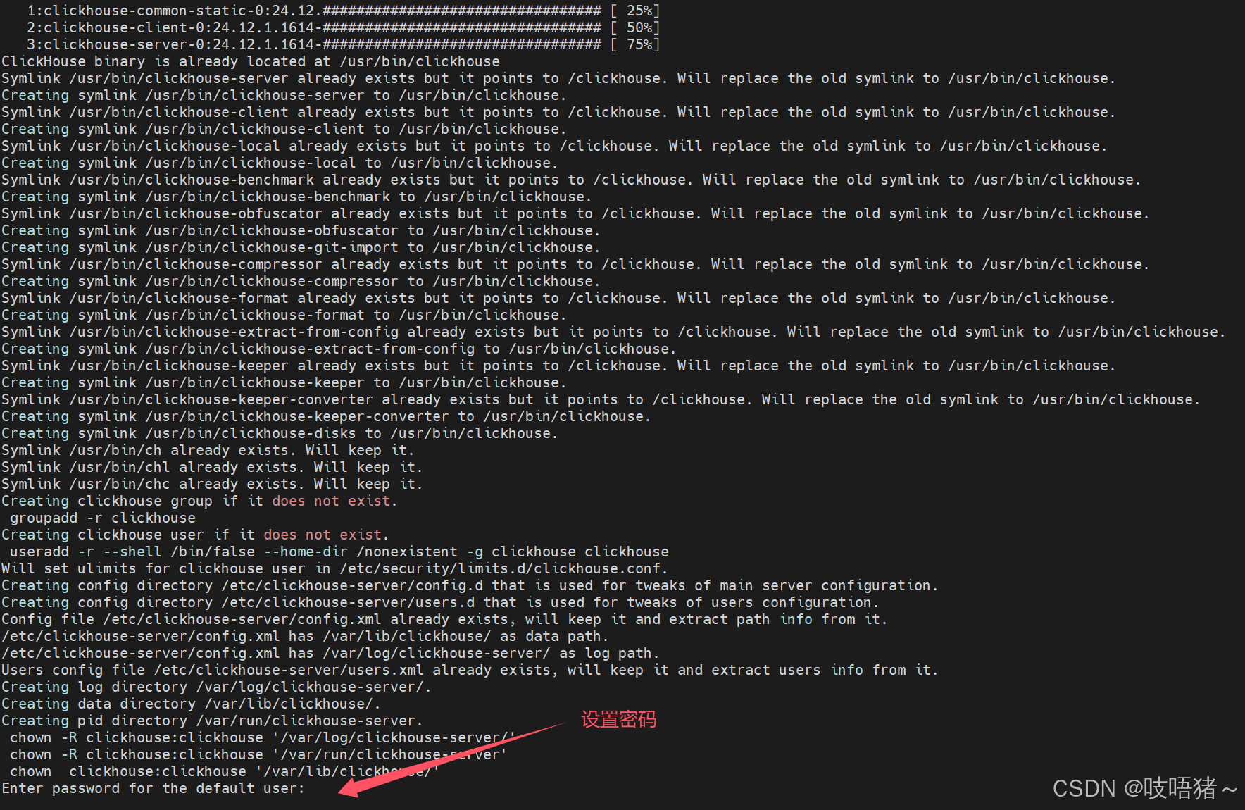 clickhouse-server:需要设置密码,最好从文本粘贴进去,也可以直接回车不设密码
