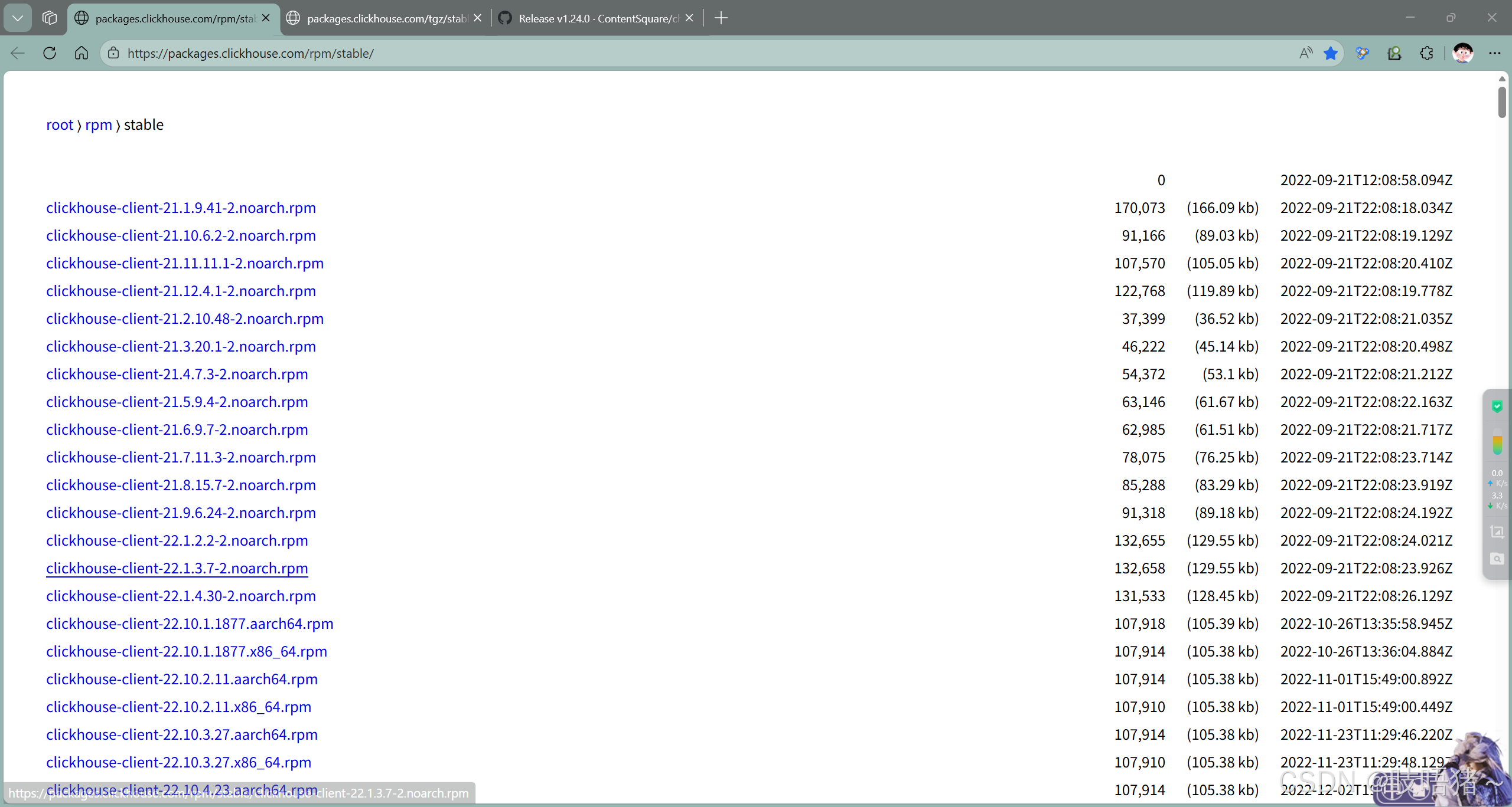 下载地址:https://packages.clickhouse.com/rpm/stable/