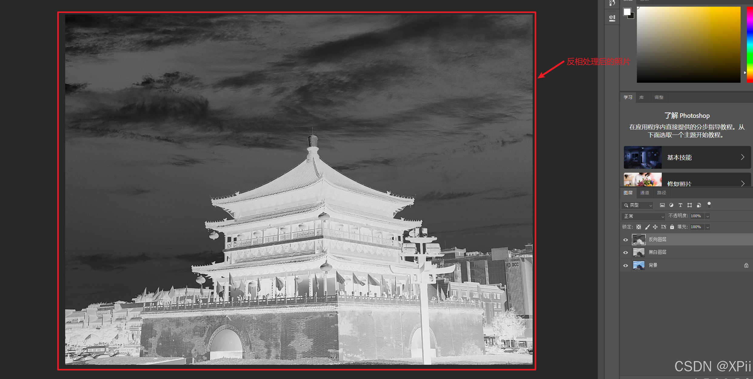 Ctrl+I进行反相处理;