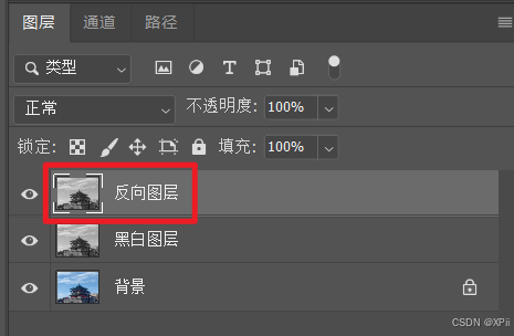 - 滤镜处理(1):复制上一步中的"黑白图层",并将其重命名为"反向图层";