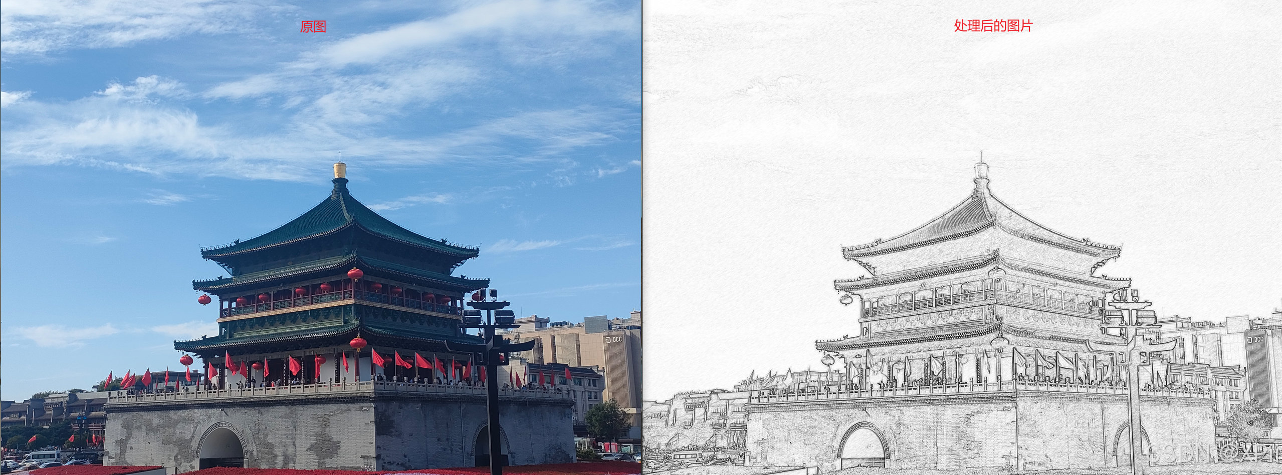 有时候需要得到素描效果的图像,采用Photoshop可以很方便实现该功能,如下图所示: