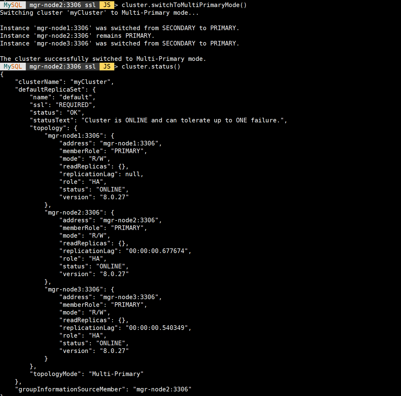 MySQL Innodb Cluster = MySQL Shell + MySQL Router + MySQL Group Replication(MGR),全程由 MySQL Shell 来管理操作 MGR 的聚合套件。MySQL 8.0.19 发布后,这种组合延伸到 MySQL Replication(主从复制),也就是 MySQL Shell + MySQL Router + MySQL Replication。