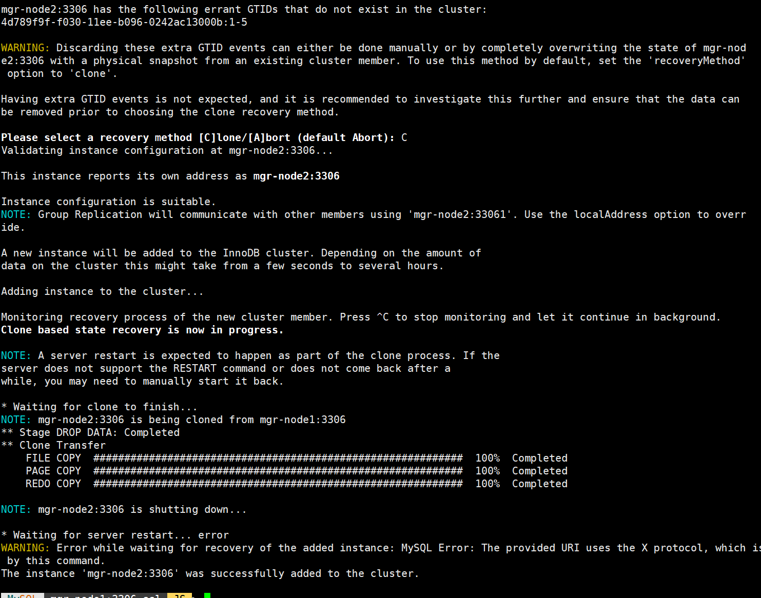 # mgr-node2和mgr-node3同上,注意配置文件路径和修改server_id