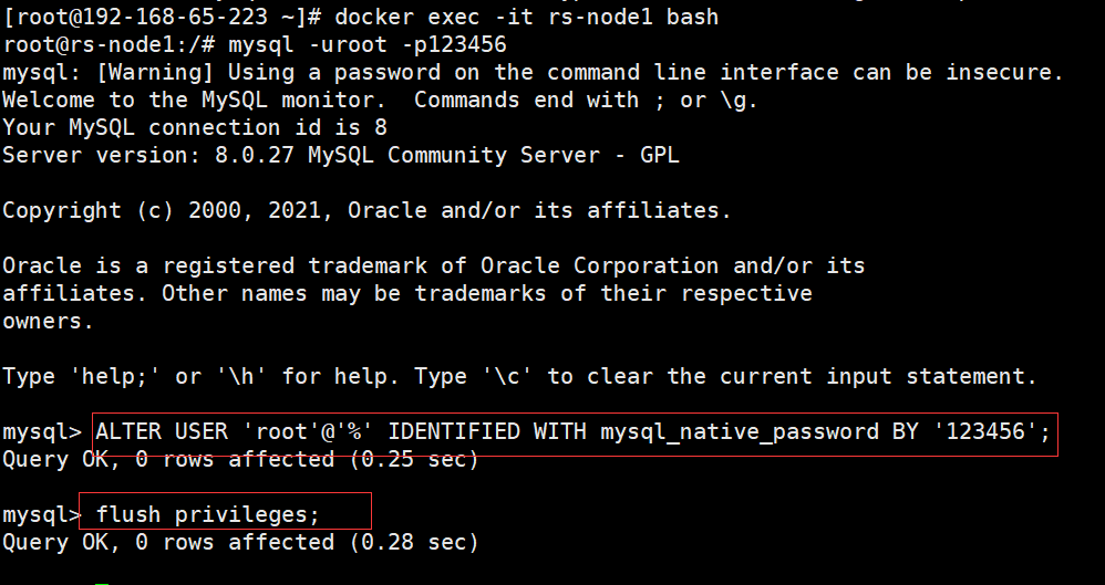 ALTER USER 'root'@'%' IDENTIFIED WITH mysql_native_password BY '123456';
