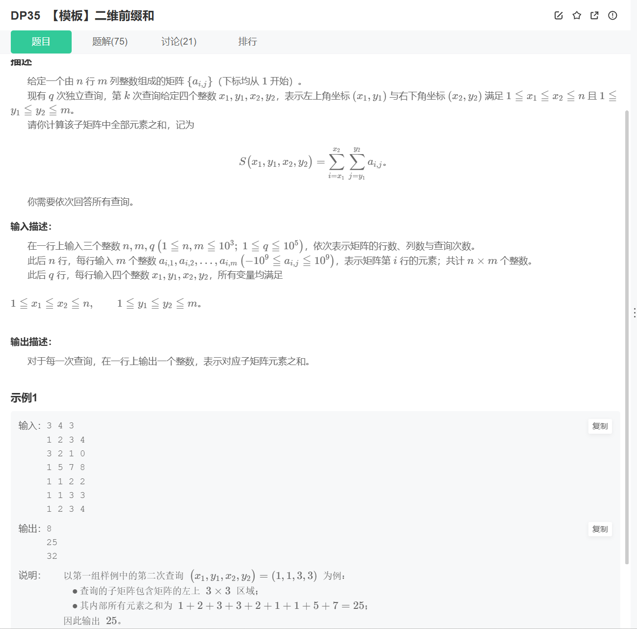 DP35 【模板】二维前缀和