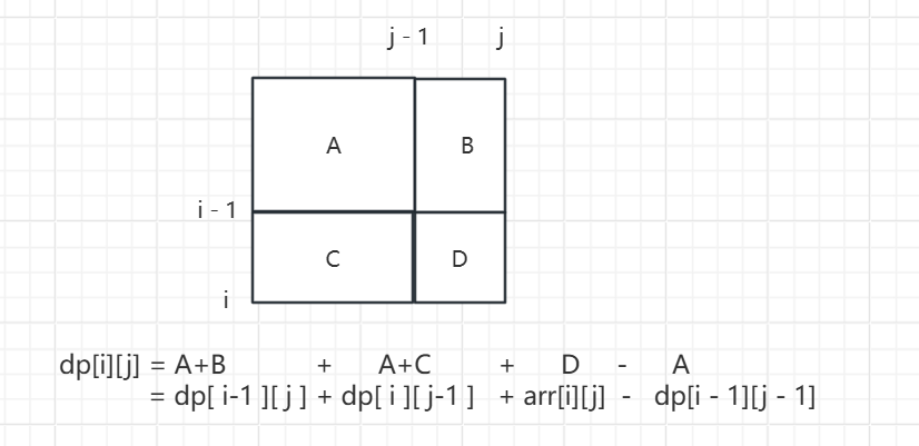 dp[i][j] = dp[i][j - 1] + dp[i - 1][j] + arr[i][j] - dp[i - 1][j - 1];