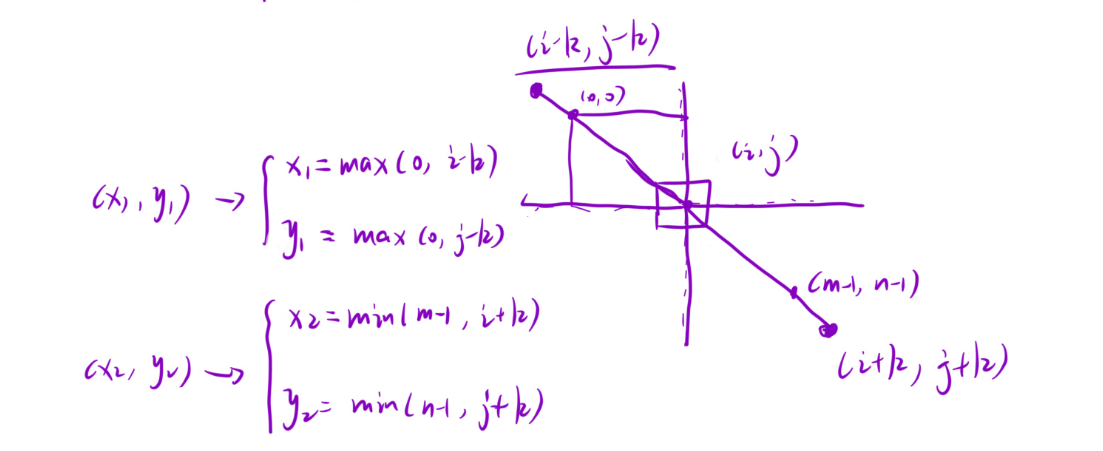 int x2 = min(m - 1, i + k) + 1;