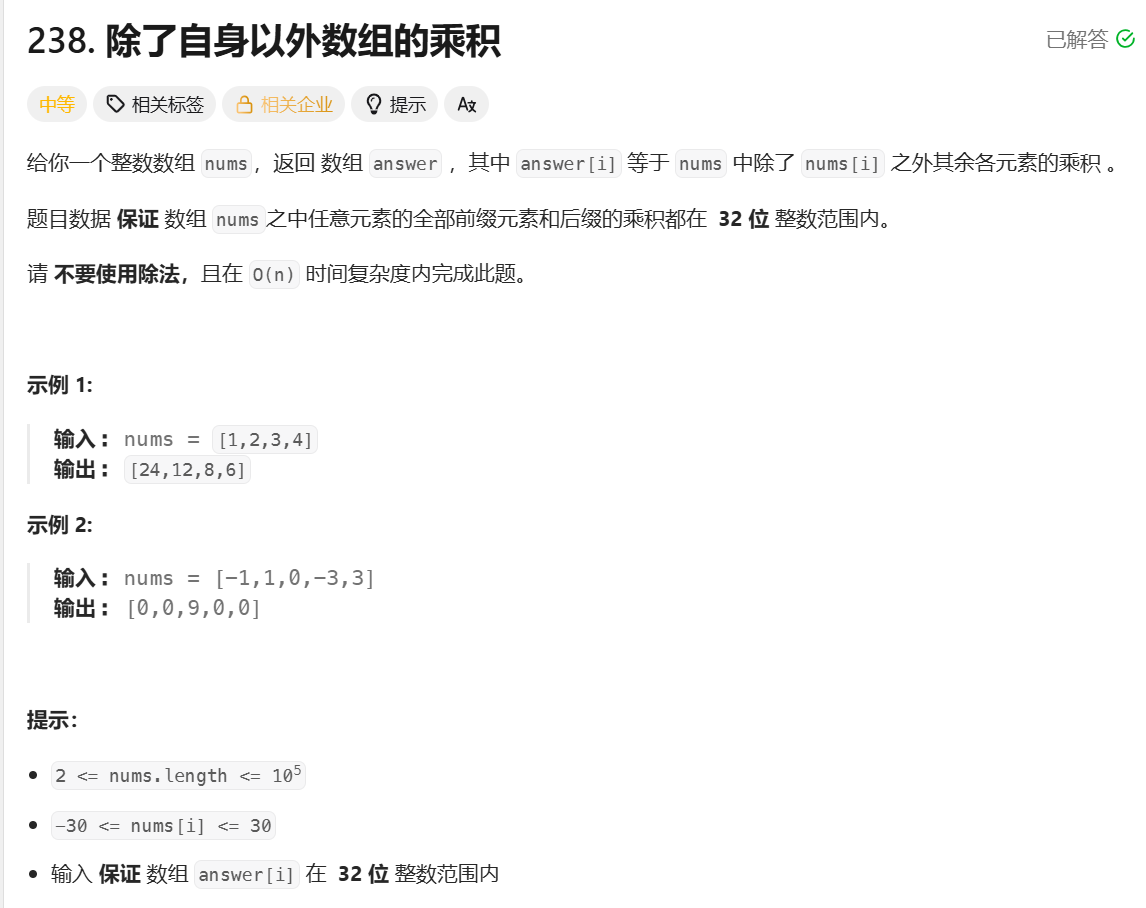 除了自身以外数组的乘积