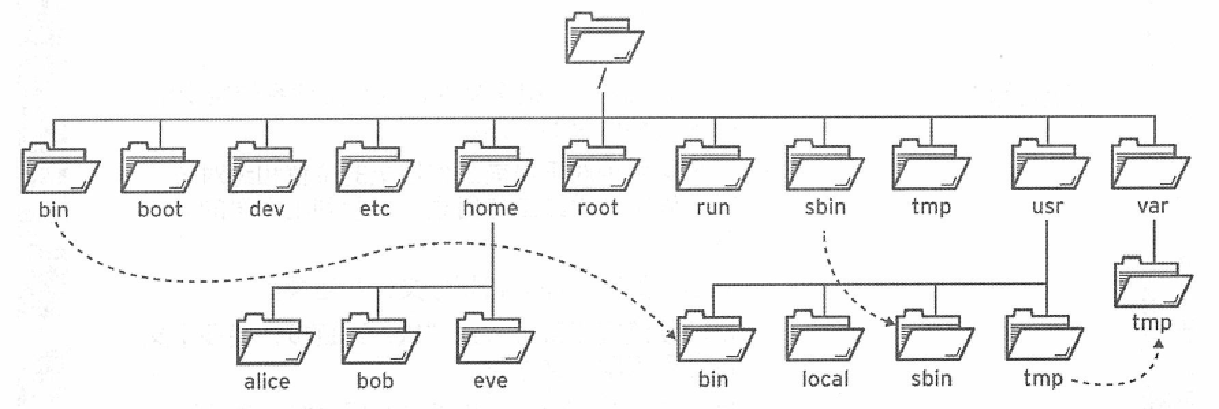 文件系统从根目录开始,表示为一个单独的'/'(斜线)字符