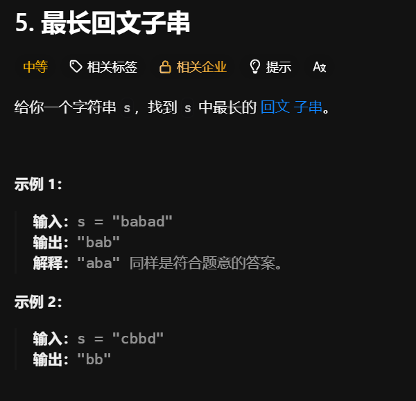 - 偶数长度回文:中心是两个字符的间隙,对应 expandAroundCenter(s, i, i+1)