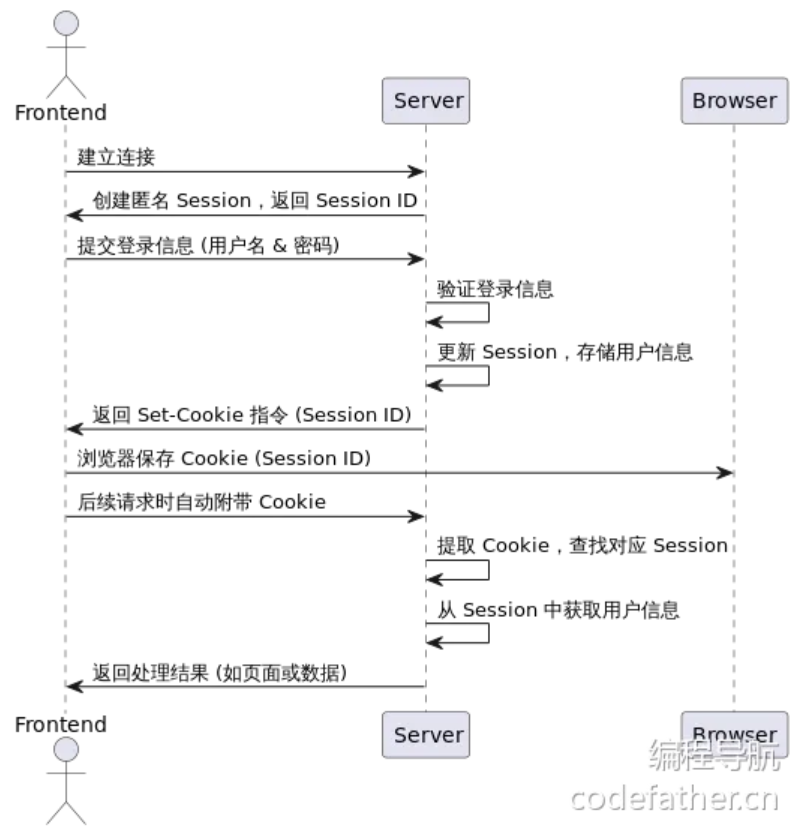 这里的session技术更像是session技术+cookie技术。将sessionid自动 传递到cookie之中,浏览器前后端通过sessionid来确认同一会话,而用户信息在单体架构中存在HttpSession 对象中,在分布式架构中可通过redis,mysql等进行存储。