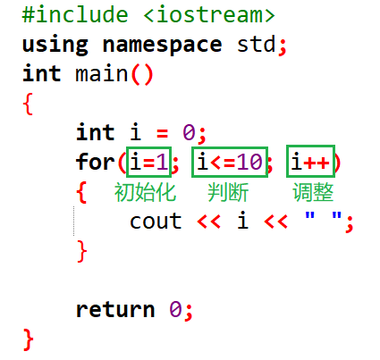 for (i = 1; i <= 10; i++)