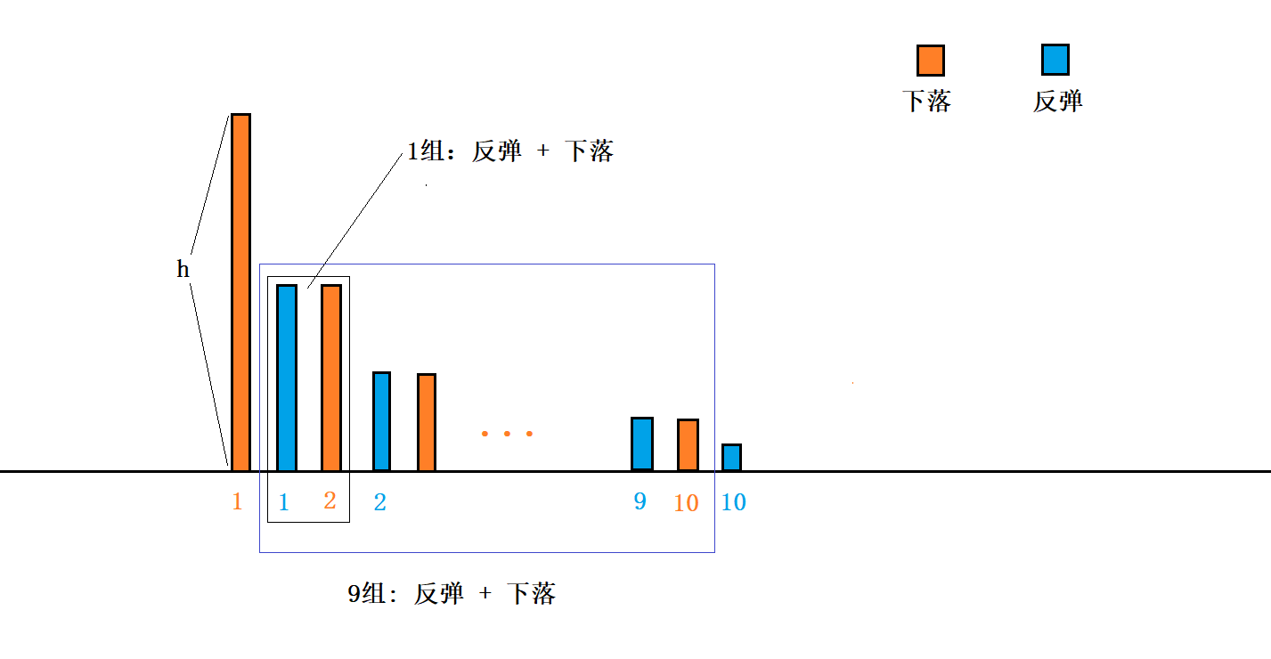 上述代码利用do-while循环,首先计算了第一次小球的弹跳高度,随后每次弹跳进入一次循环,每次循环求出对应的高度,顺便求出它们的和。之后总体进行输出打印即可。