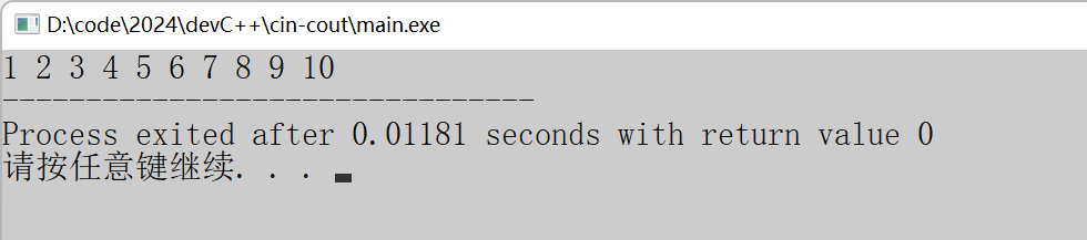 上述代码的输出结果为:1 2 3 4 6 7 8 9 10