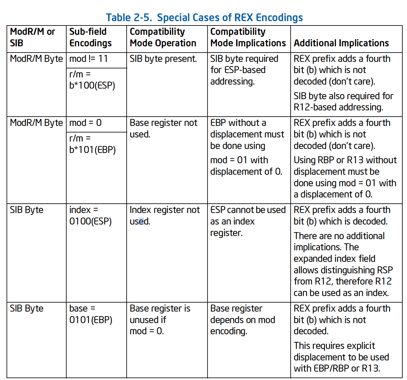 (REX 前缀的特殊情况见 2.2.1 节)。