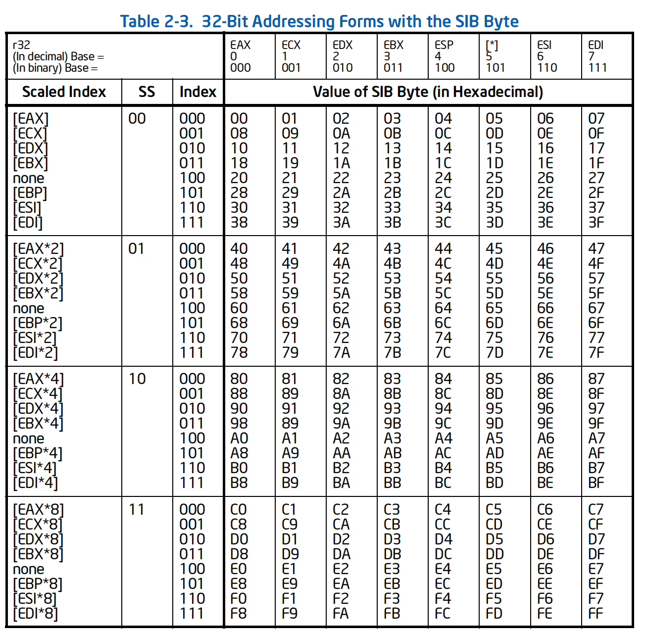 SIB(Scale-Index-Base)字节 - 偏移量(Displacement)(如果需要)