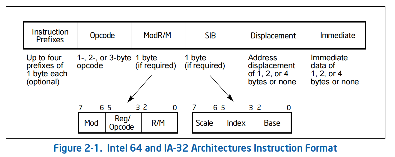 Intel 64 与 IA-32 架构的指令编码,都是 图 2-1 所示指令格式的子集。