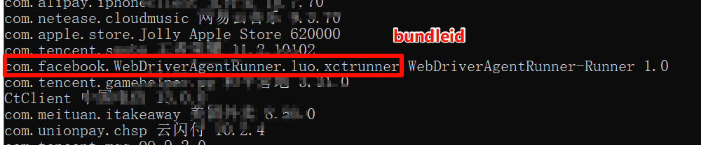 (3)执行命令找到WDA的bundleid:ios apps --list