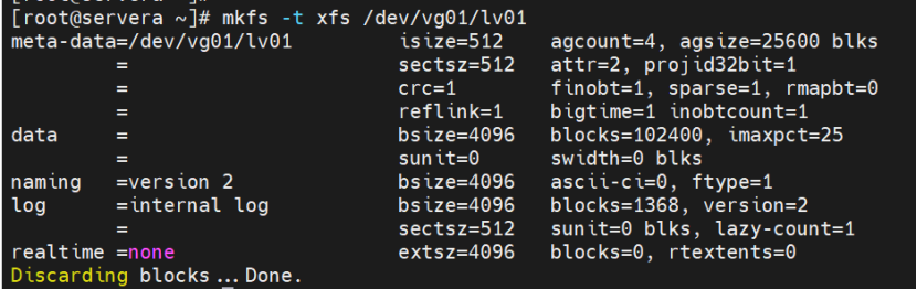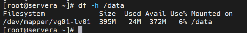 echo "/dev/vg01/lv01 /data xfs defaults 0 0" > /etc/fstab