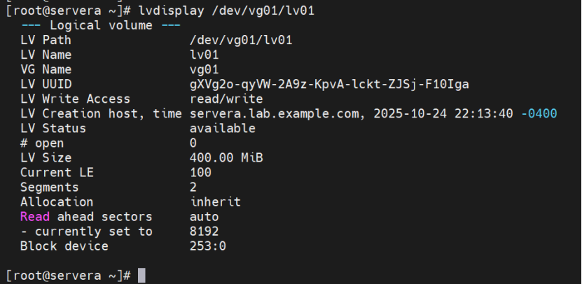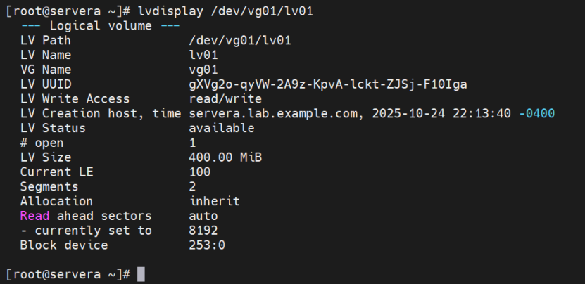 | LV Path | 设备路径:/dev/vg01/lv01 |