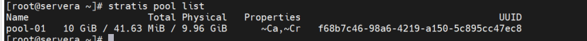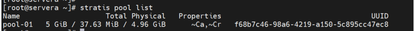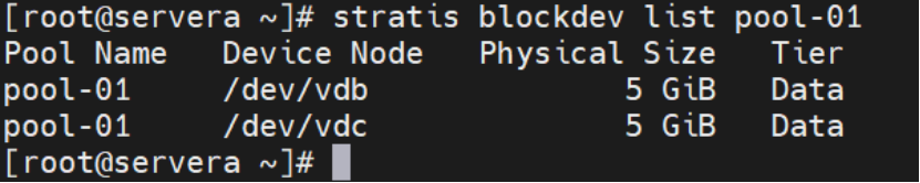 | 创建池 | stratis pool create pool-01 /dev/vdb /dev/vdc |