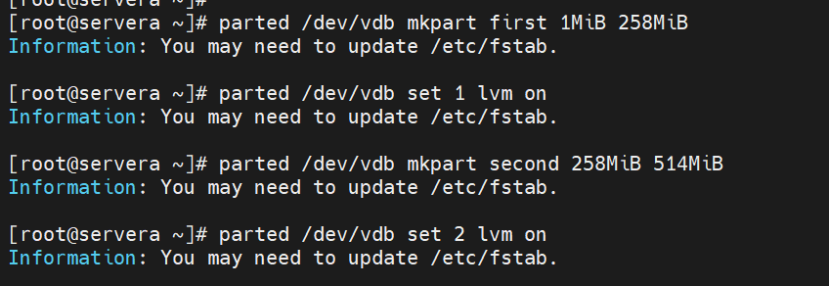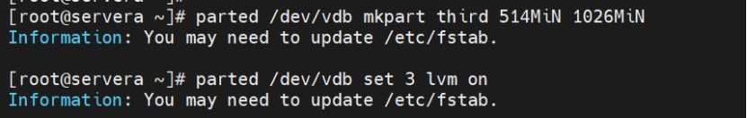 parted /dev/vdb mkpart second 258MiB 514MiB