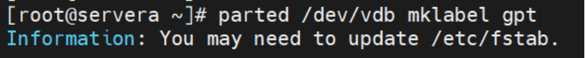 parted /dev/vdb mkpart first 1Mib 258Mib