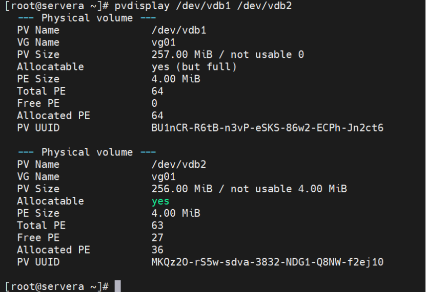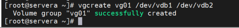 sudo vgcreate vg01 /dev/vdb1 /dev/vdb2