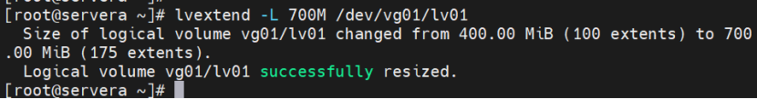 | 扩展 LV | lvextend -L +5G /dev/vg01/lv01 |