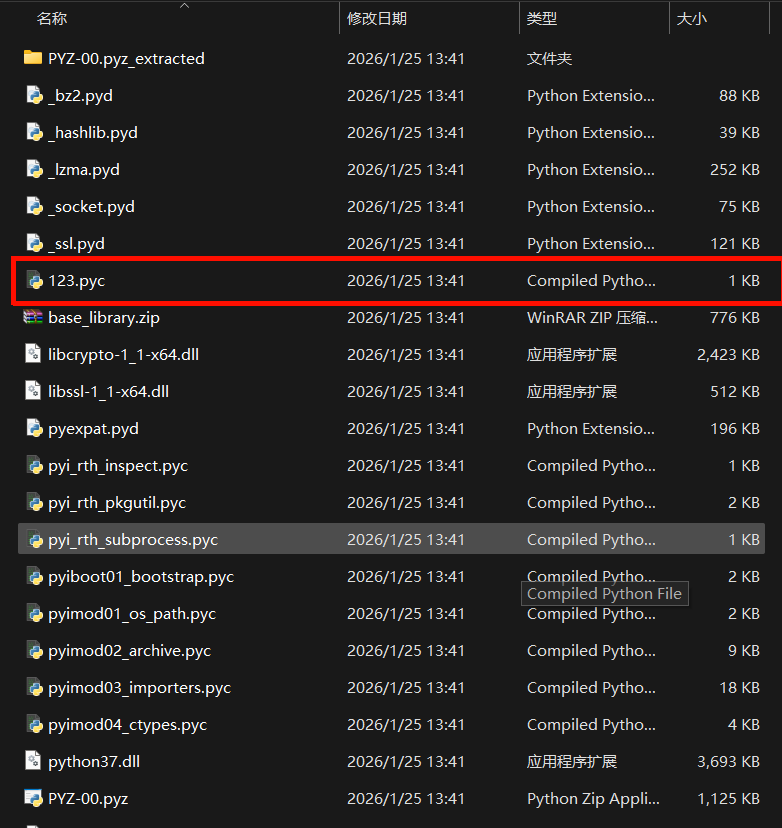 下载后在刚刚的文件夹中就能得到 pyinstxtractor