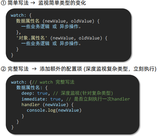 // 具体讲解:(1) watch语法 (2) 具体业务实现