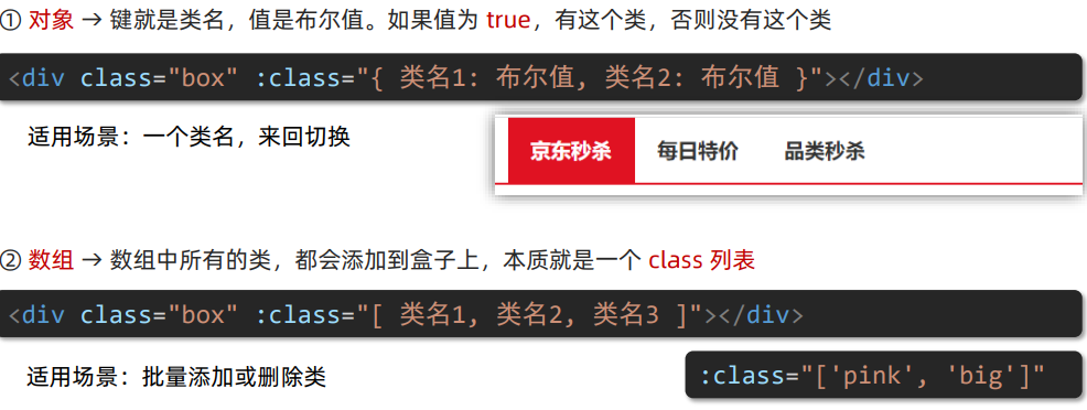 <div class="box" :class="['pink', 'big']">黑马程序员</div>