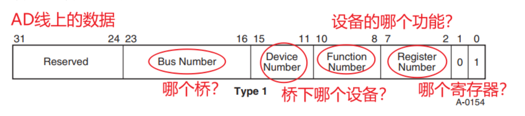 选中:通过IDSEL来选中某个设备(值得注意,PCIe设备没有此IDSEL)