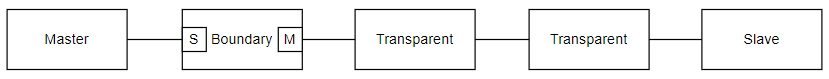 Boundary:边界时钟,边界时钟包含一个Slave和Master,Slave从上游的Master同步时间;Master向下游的Slave同步时间,那么下游的Slave就只认识Boundary中的Master,不认识上游的Master了。