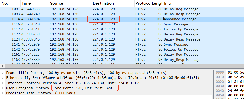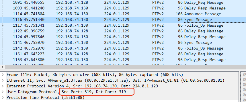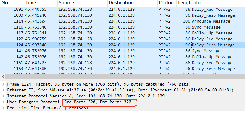 1、Announce、Follow-Up、Delay_Resp报文,使用端口320;Sync、Delay_Resq使用端口319