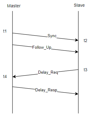 Delay_Req离开slave的时刻是t3,Delay_Req到达Master的时刻是t4。