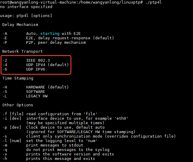 使用ptp4l命令可以-2指定使用以太网,-4使用udp。