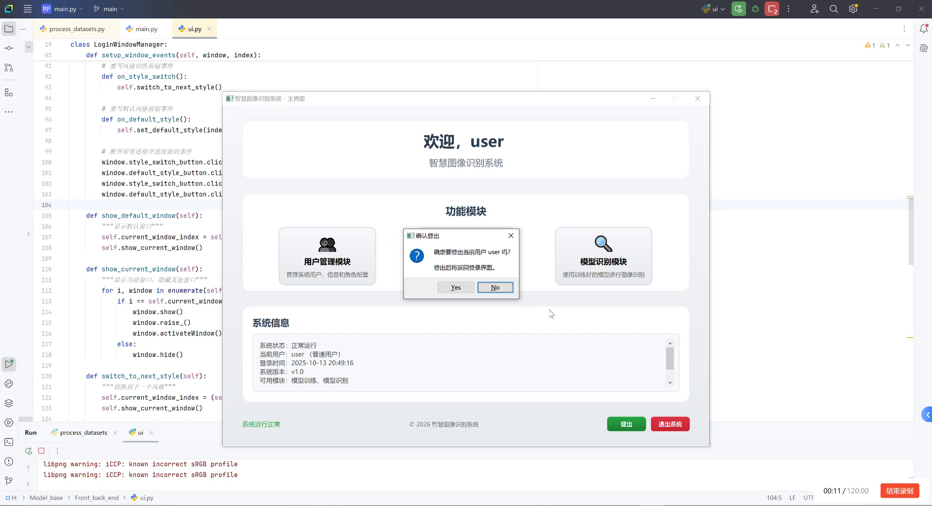 界面设计遵循直观、高效的原则,通过合理的布局和交互设计,使用户能够快速上手并高效使用系统。系统还支持多种输入方式,包括单张图片、视频流和摄像头实时输入,满足不同场景下的使用需求。