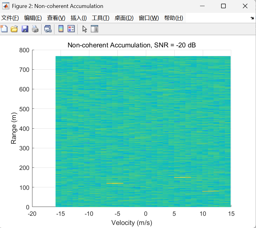 这也是为什么在低信噪比或较大速度时,原始 RV 图里往往会出现旁瓣抬升、杂散等现象。
