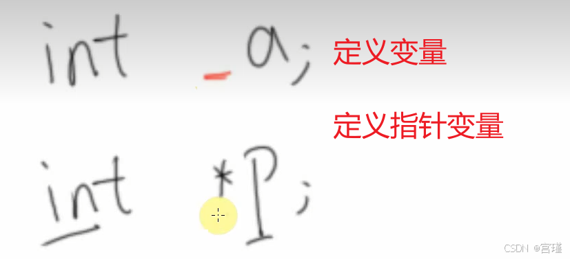 char * p; //认为char*为指向char的指针类型 后面是该指针类型的变量名p