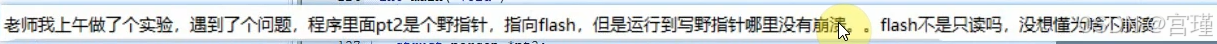 FLASH是只读的,通过指针写FLASH,CPU可以执行,但是写失败。