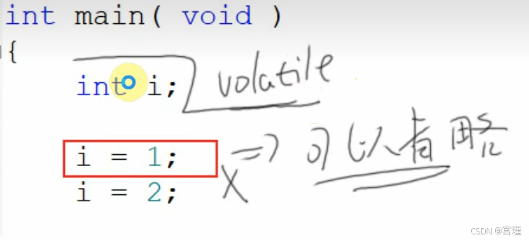 但是代码作者想i = 1;有特殊用处,所以加volatile,不让编译器优化i这个变量。