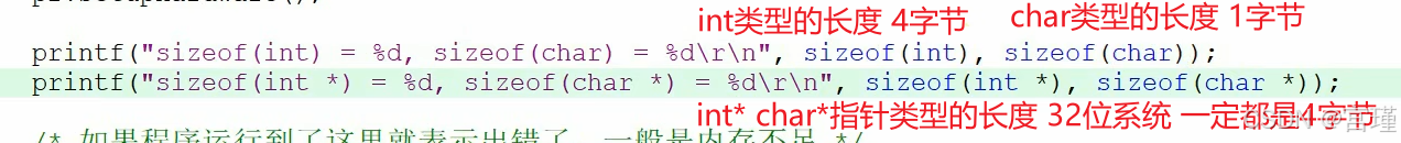 32位的CPU,不管什么类型的指针变量,占用空间的长度都是4个字节。