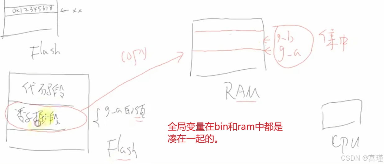 1 全局变量的初值,来自FLASH。