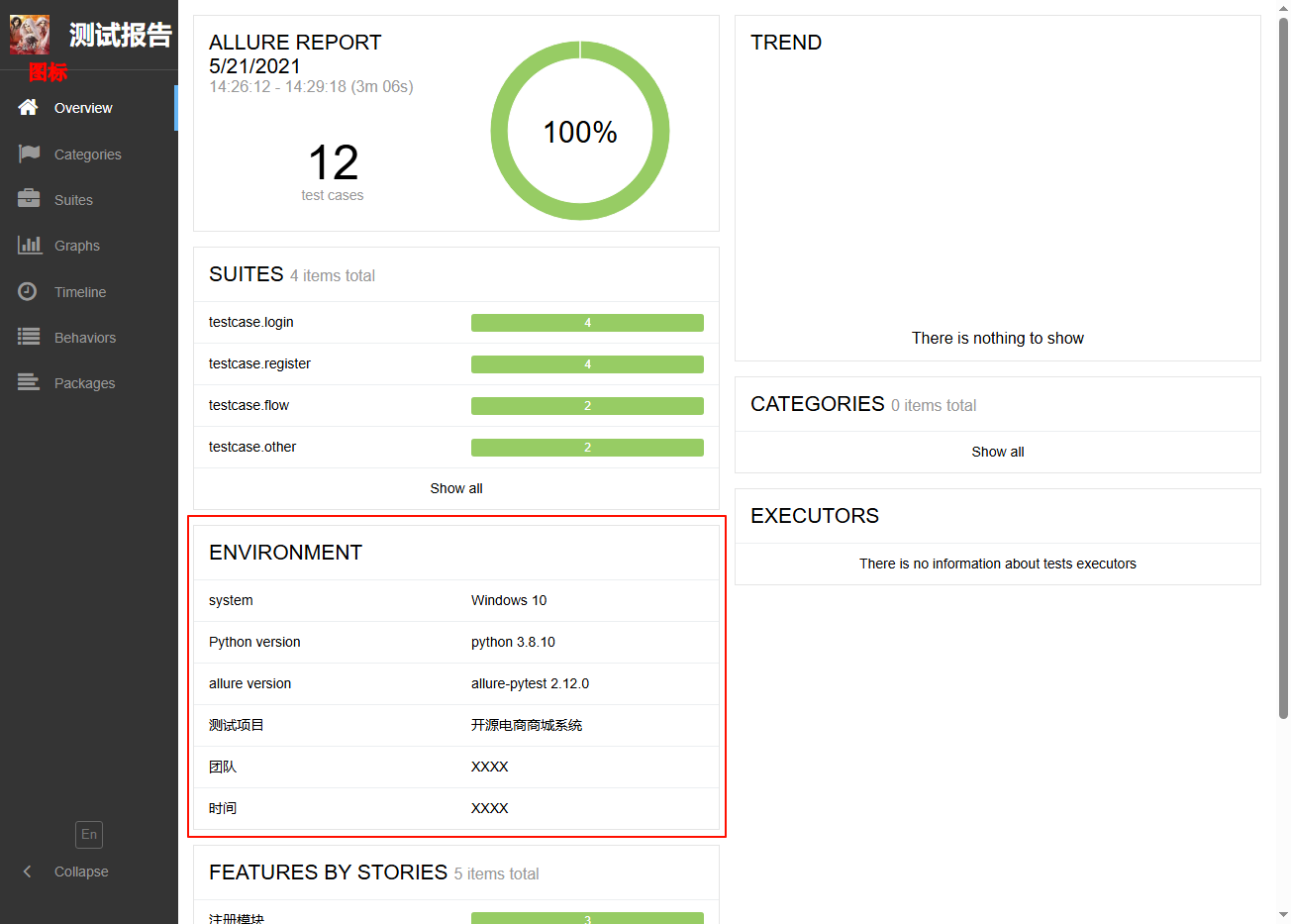 增加测试报告首页环境信息和修改 allure 测试报告显示图标;