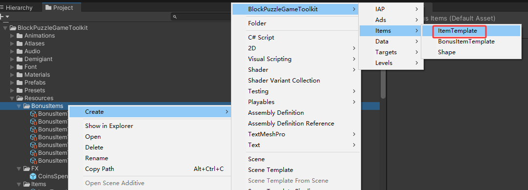 选中目录,根据脚本中CreateAssetMenu特性中的目录,即可创建数据资源
