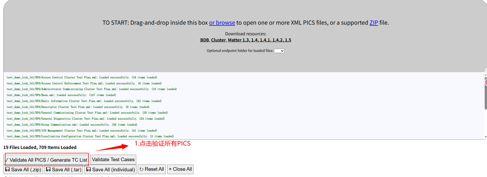 3.点击验证所有PICS文件: