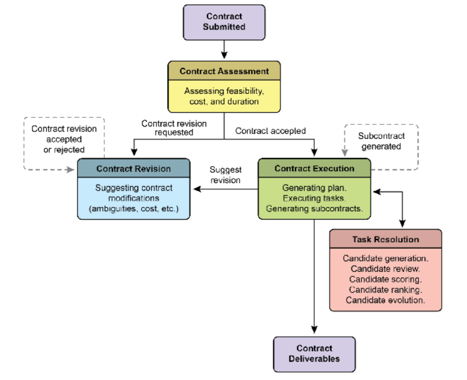 第二是动态的协商和反馈生命周期支柱。合约不是静态命令,而是对话的开始。承包商 Agent 可以分析初始 条款并进行协商。例如,如果合约要求使用 Agent 无法访问的特定专有数据源,它可以返回反馈,说明"指定的 XYZ 数据库不可访问。请提供凭据或批准使用替代公共数据库,这可能会略微改变数据的粒度。"这个协商阶段也允许 Agent 标记歧义或潜在风险,在执行开始之前解决误解,防止代价高昂的失败,并确保最终 输出与用户的实际意图完全一致。